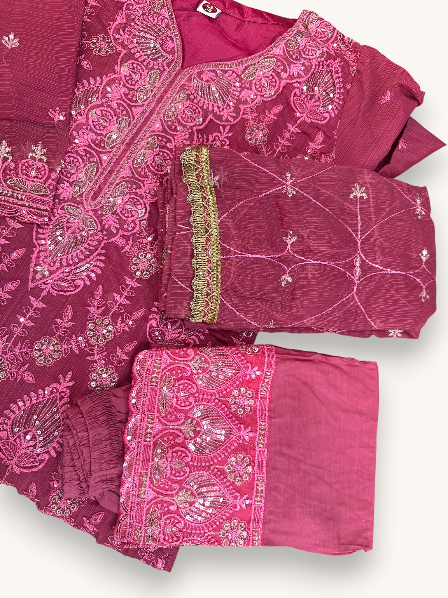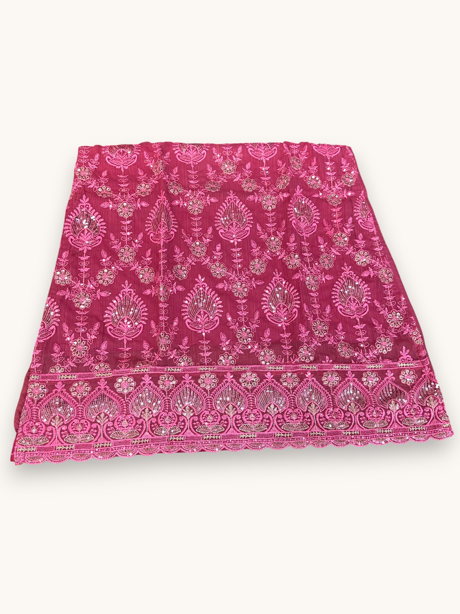 Rose Pink Kota Embroidered With Mechine Embroidery Work Dupatta