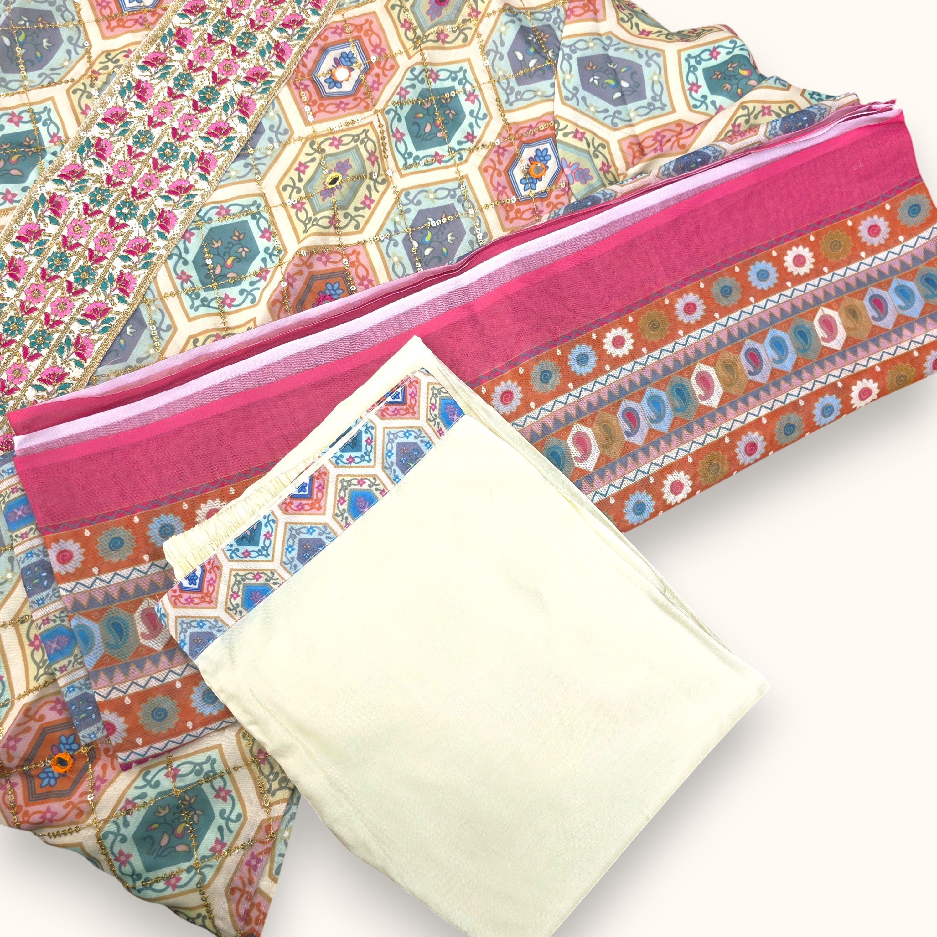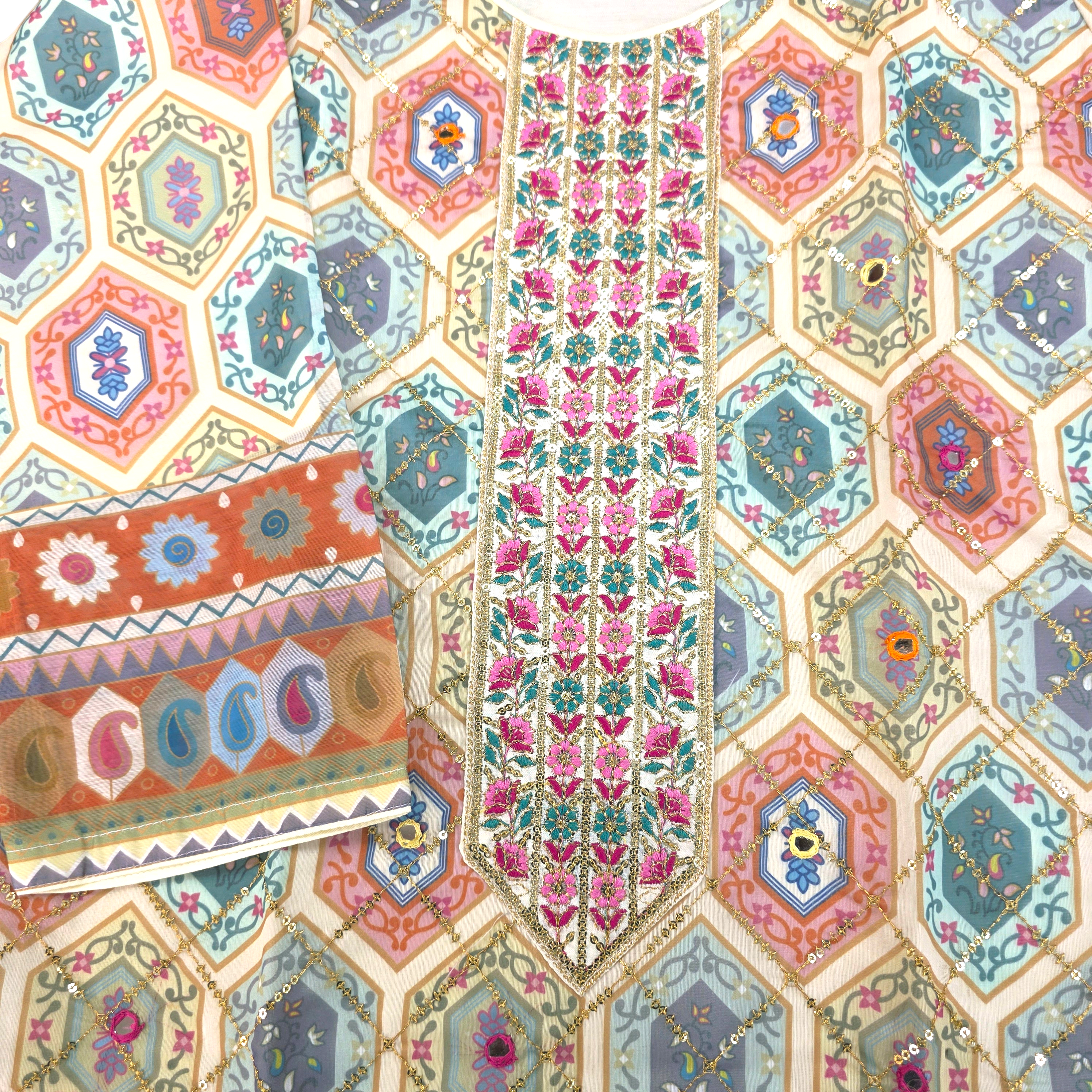 Soft Cream Elegant Printed Salwar Kameez with Matching Dupatta