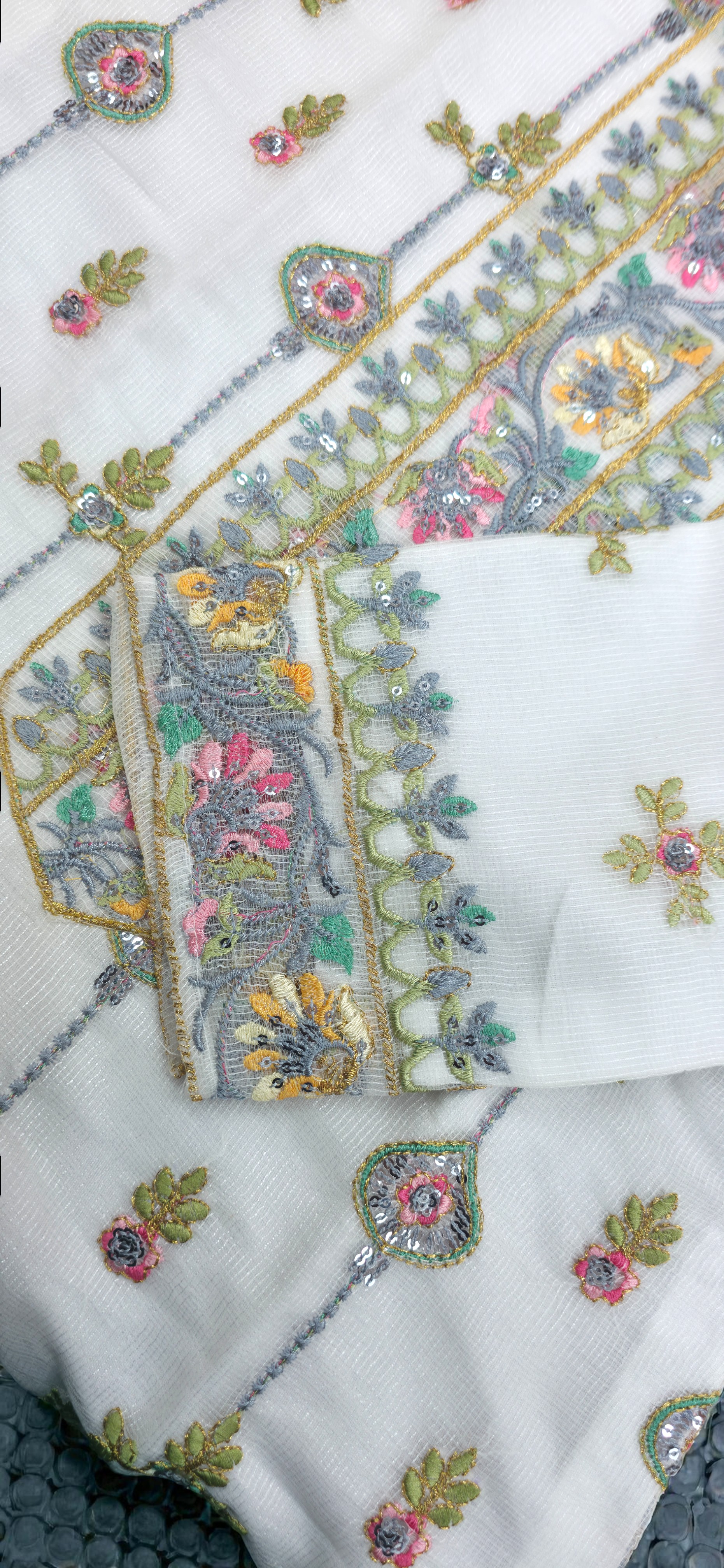 White Kota Febrics With Mechine Embroidery Work Dupatta